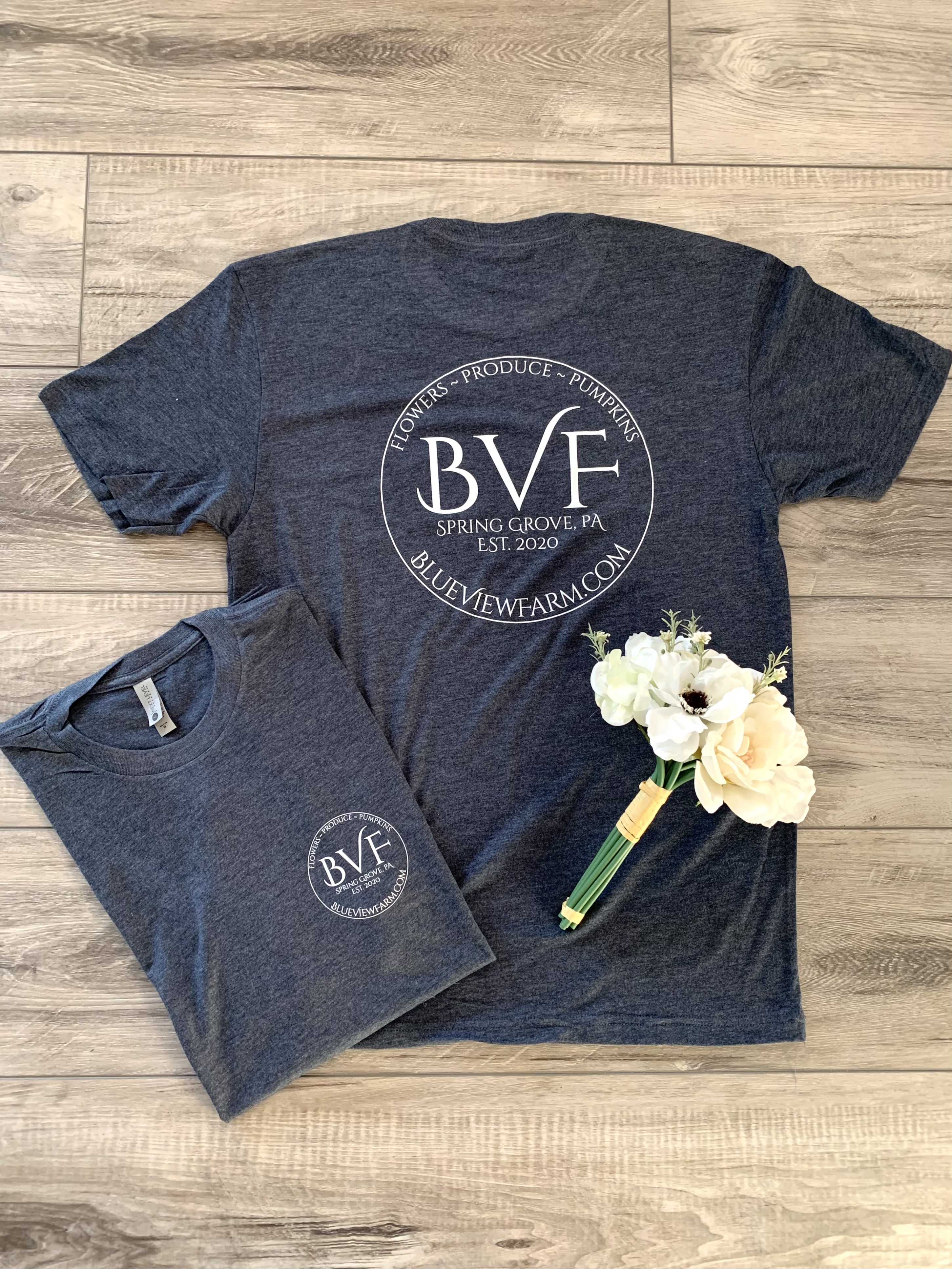 Update your wardrobe with this extremely soft t-shirt! BVF logo on the front left and back. Makes a great gift paired with flower or produce subscription. All sizes available.