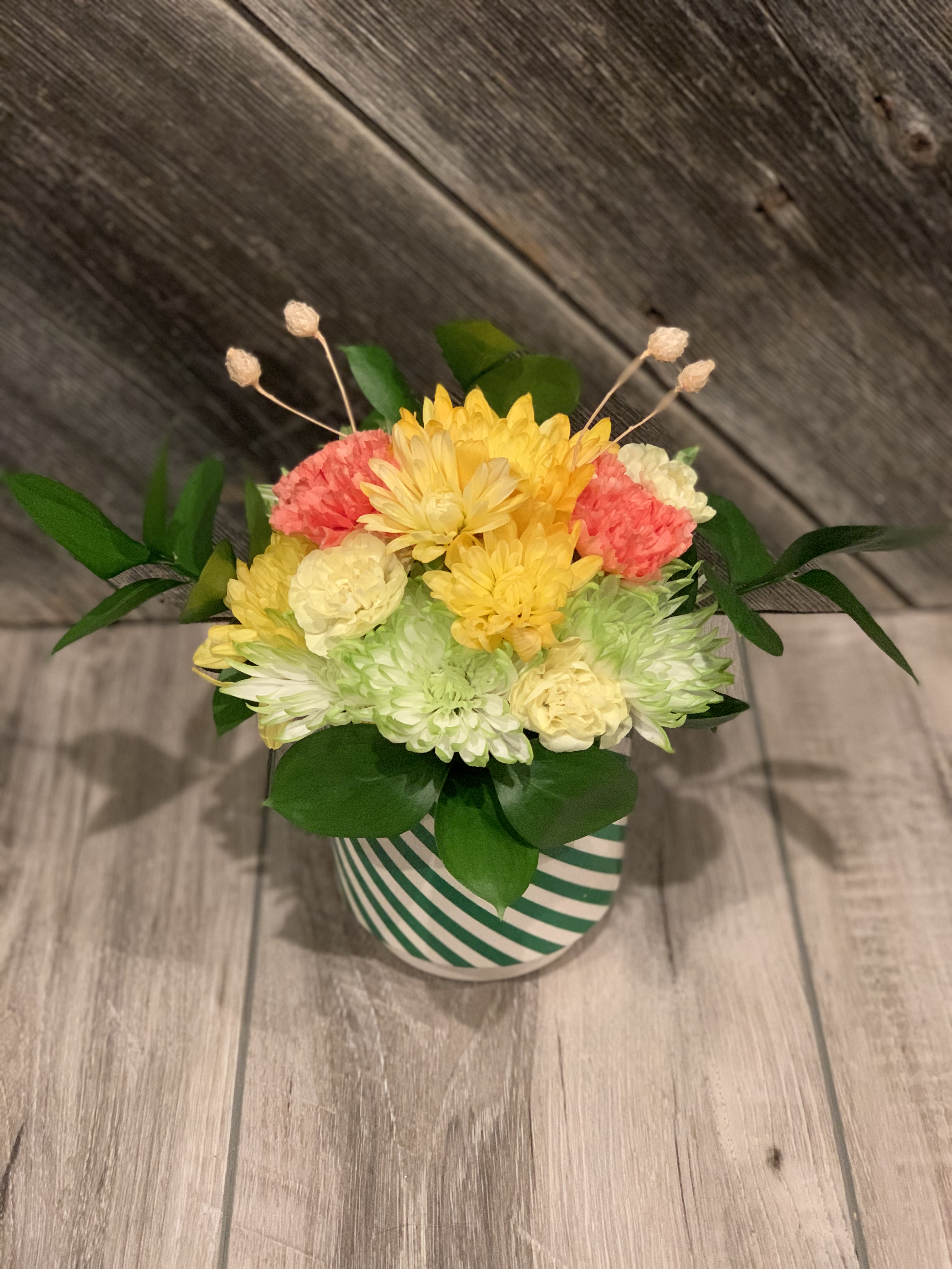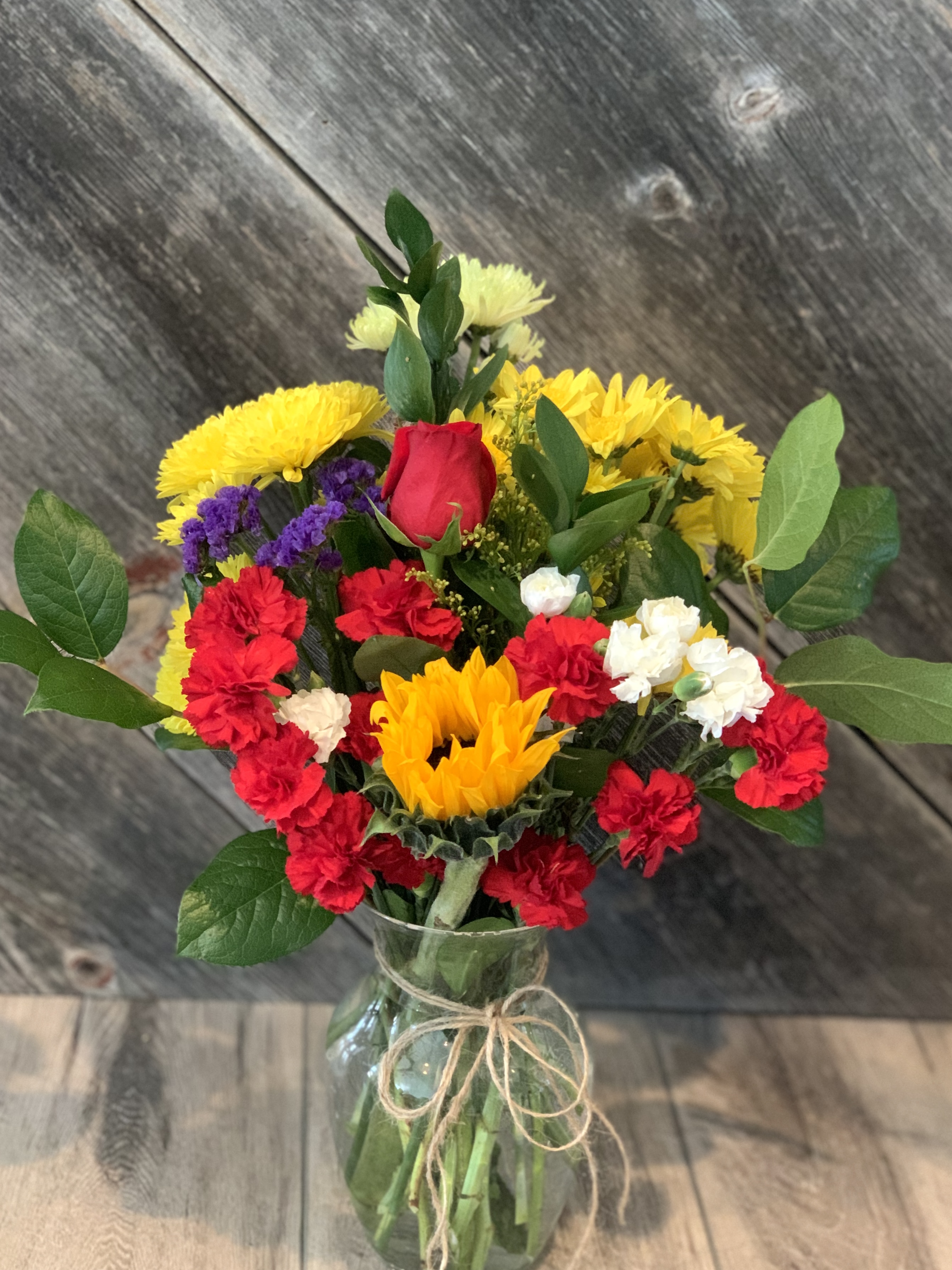Quick and easy…a $20 bouquet looks great in any vase you have! Need a little bigger bouquet or need multiple? Order as many as you need. Flowers will be seasonal; colors will vary.