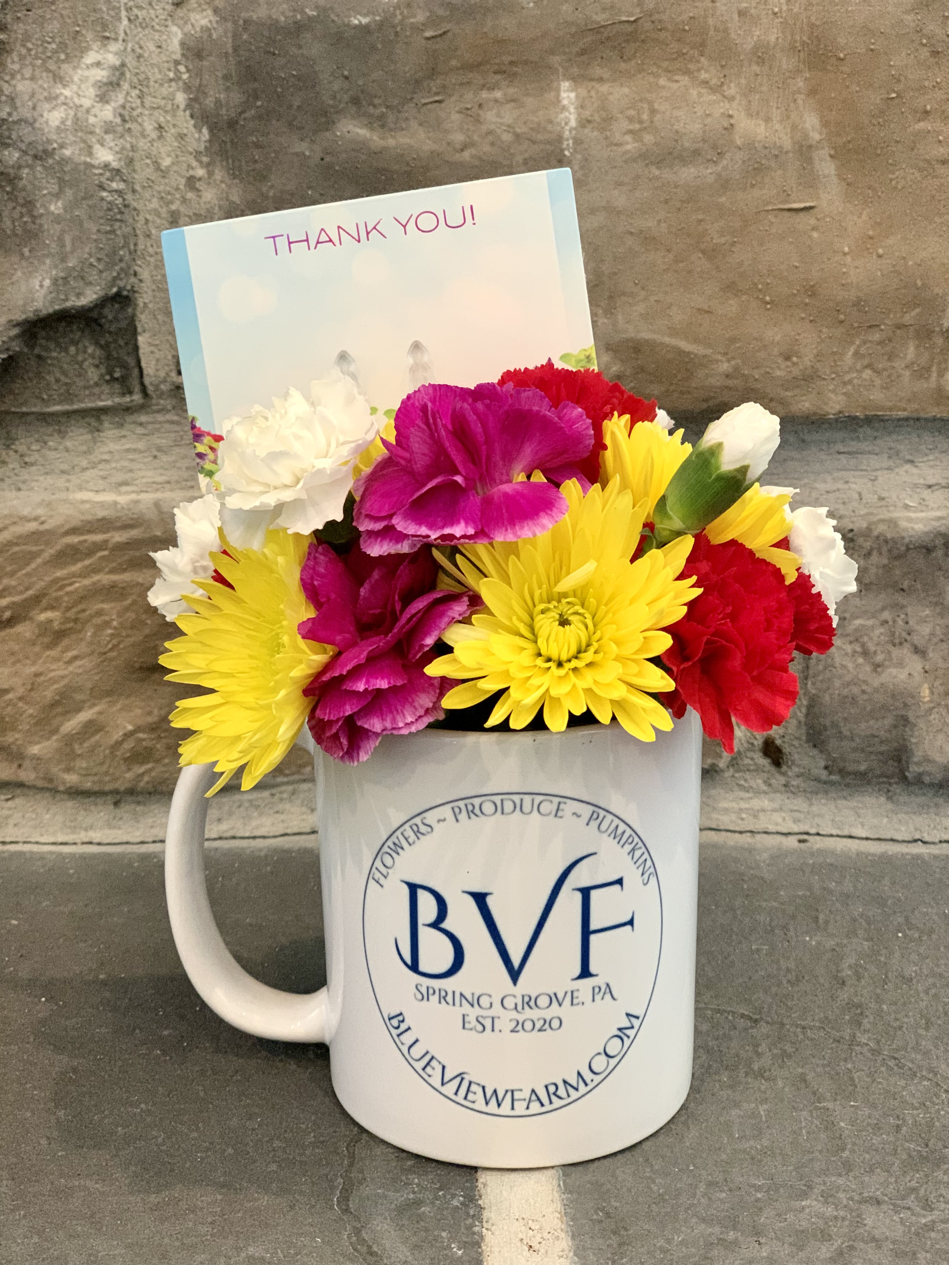 Great for any occasion! This 11oz. mug will be filled with colorful flowers and a tag to match your sentiment. It’s the perfect size…makes a great teacher gift!