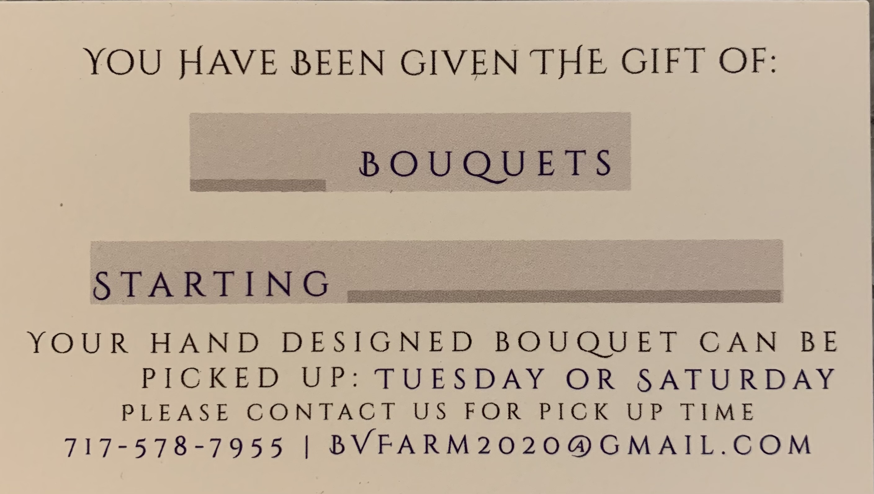 Birthday/Anniversary Subscription– Pick up 2 bouquets…one for her birthday and one for your anniversary! $30 -You pick the dates! Flowers will be seasonal per the dates you pick.