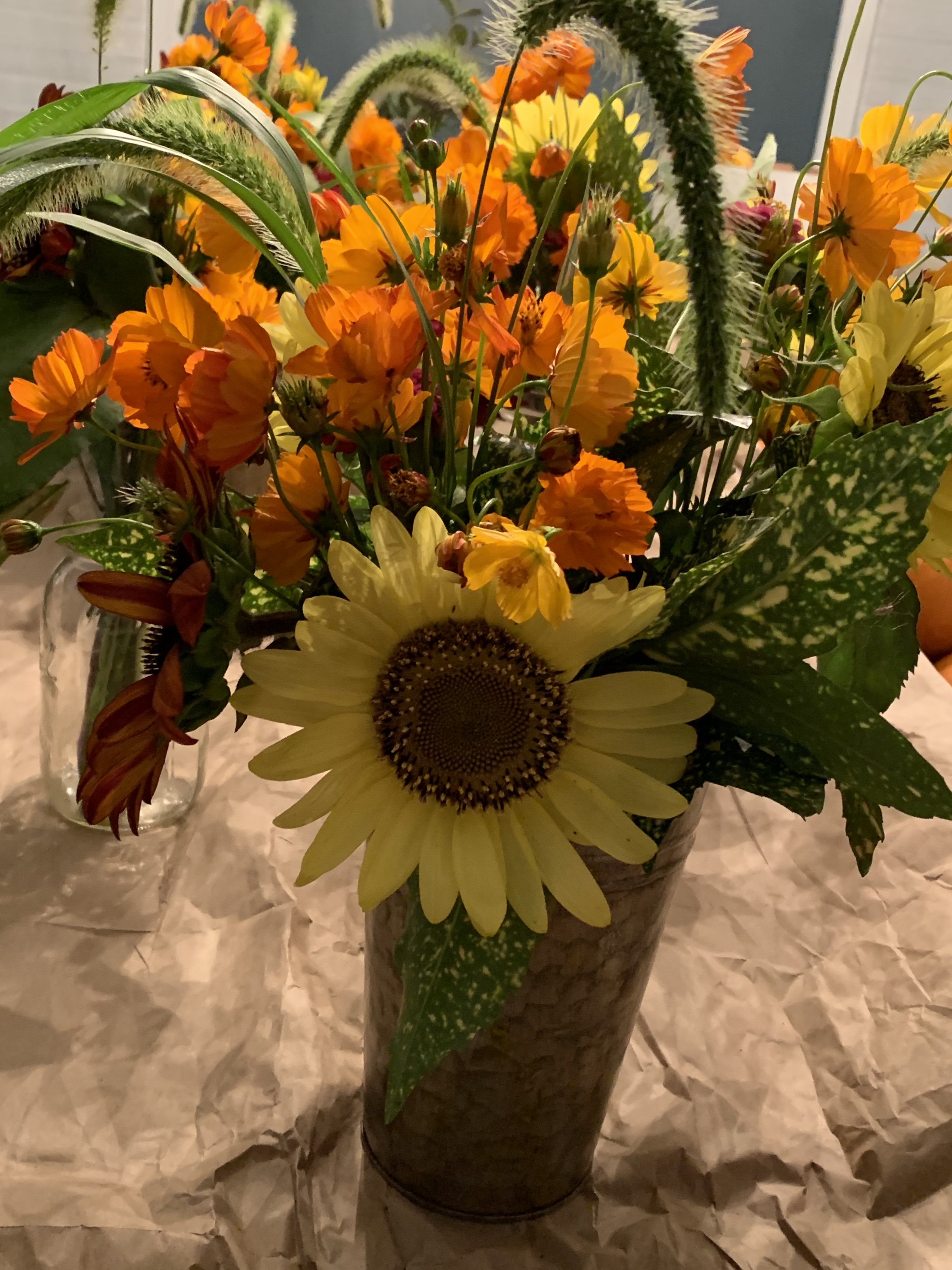 Fall Bouquet Subscription– Pick up 4 bouquets of Autumn splendor August-September: $60 -This is the most loved option because it includes sunflowers, cosmos, and hydrangeas.