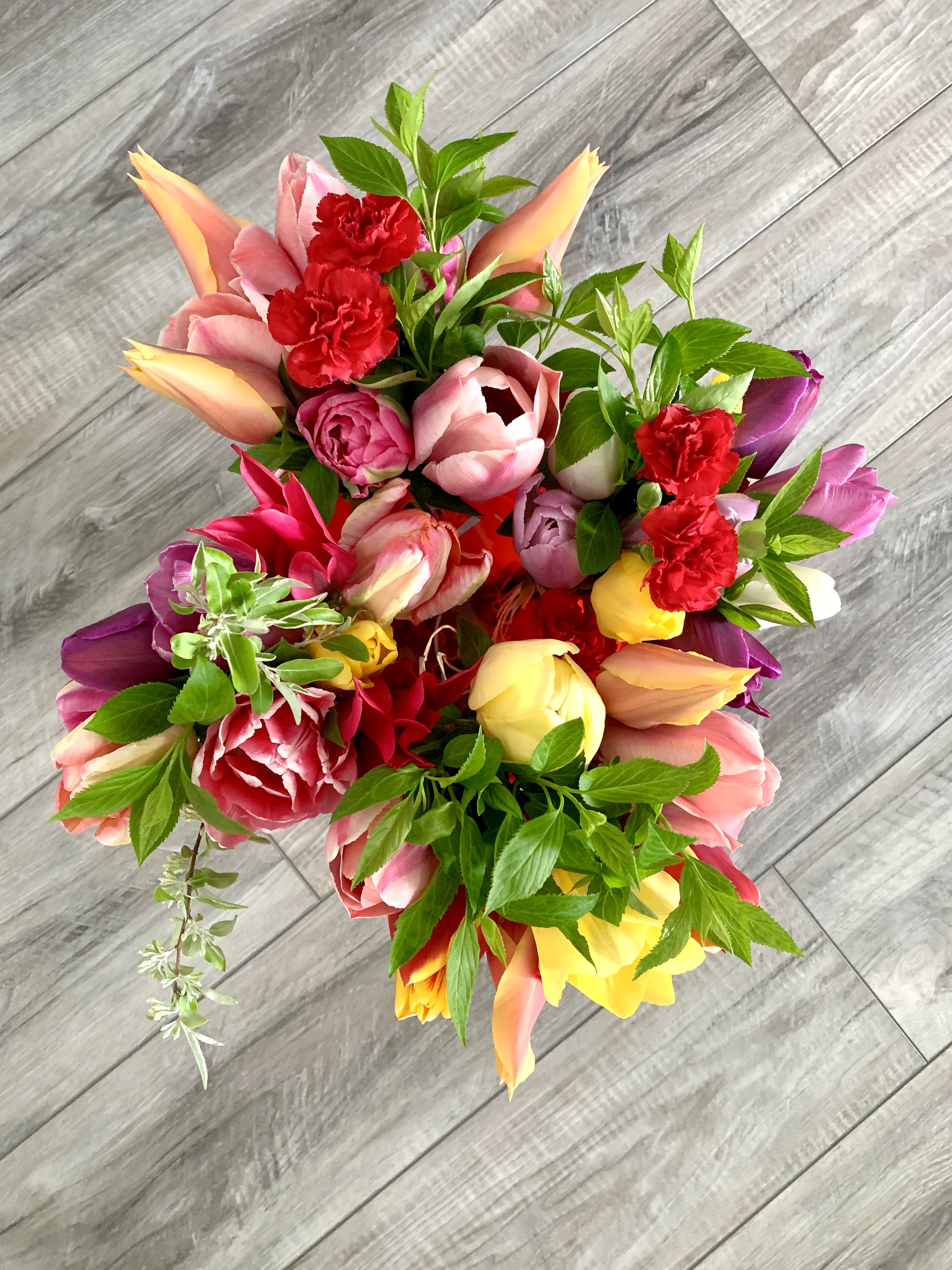 Spring Bouquet Subscription– Pick up 4 bouquets of Springtime flowers April-May: $60 -This option will likely include tulips and daffodils.